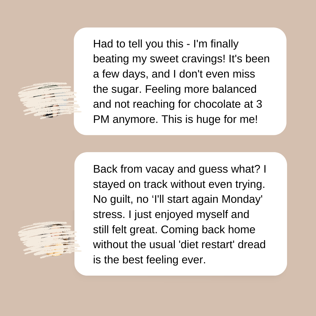"Bloating is rare now. Energy levels are high. Hair loss is getting better. I’m into reading labels and meal prepping. Making smarter food choices. My period’s like clockwork now, no cramps. I spent years on birth control. Only now, at 42, I understand my body better. Grateful for this program. The support’s been life-changing. It’s made me appreciate my body. Committed to continuing my gut healing. The program and community have been a game-changer."