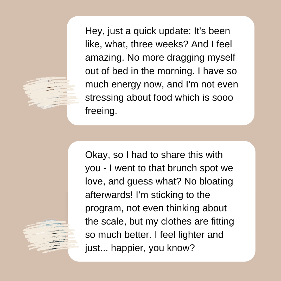 You know how I've always struggled with my tummy issues? They're practically gone. I feel like I've got this whole new digestive system. It makes my days sooo much easier. I can’t wait for the next step of the program.
